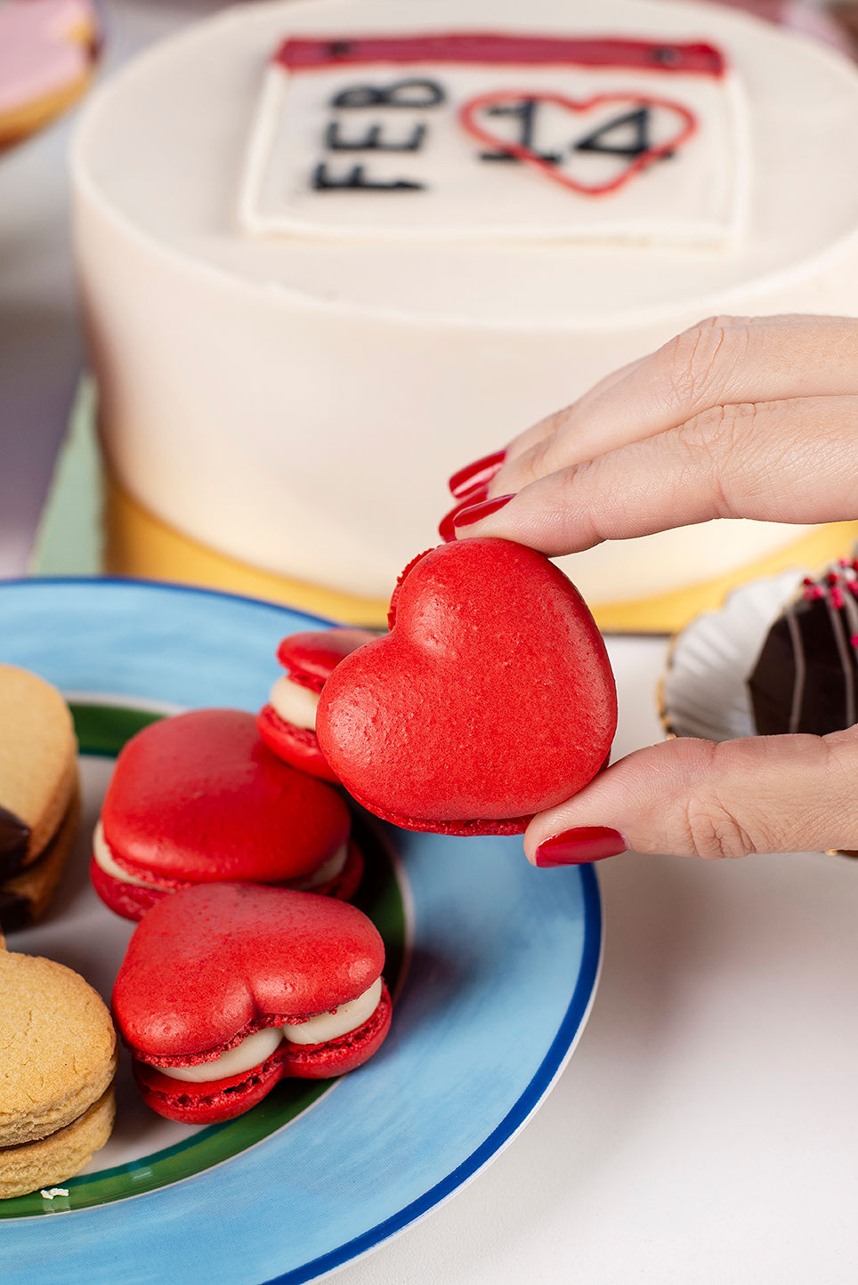 Cajita transparentes con 5 macarons en forma de corazón, rellenos de nutella