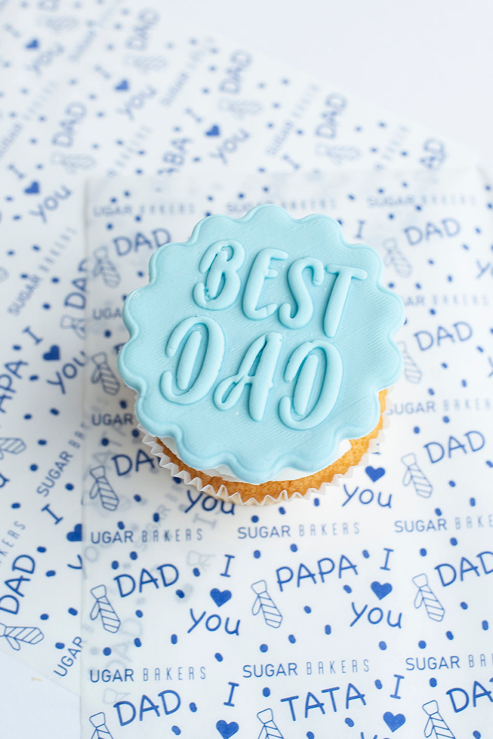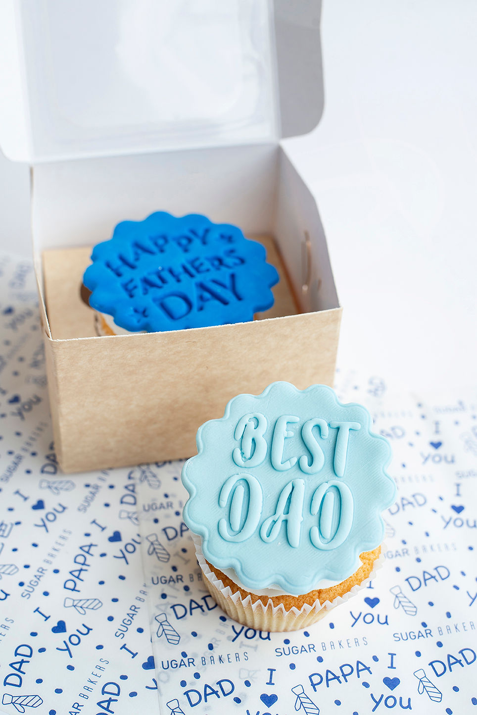 Cajita de cupcake de vainilla decorado con motivo del día del padre.